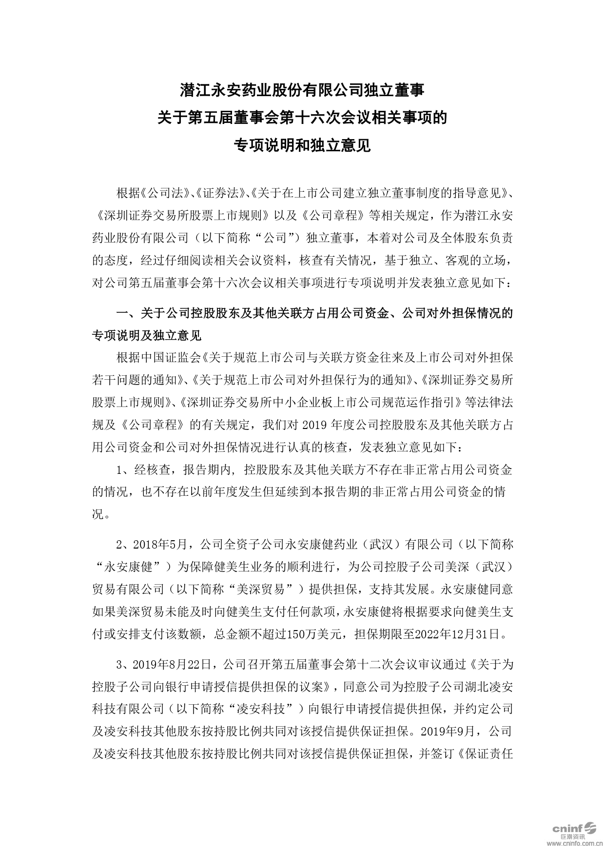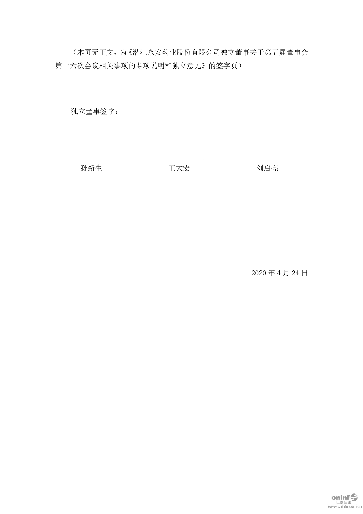 獨立董事關(guān)于第五屆董事會第十六次會議相關(guān)事項的專項說明和獨立意見