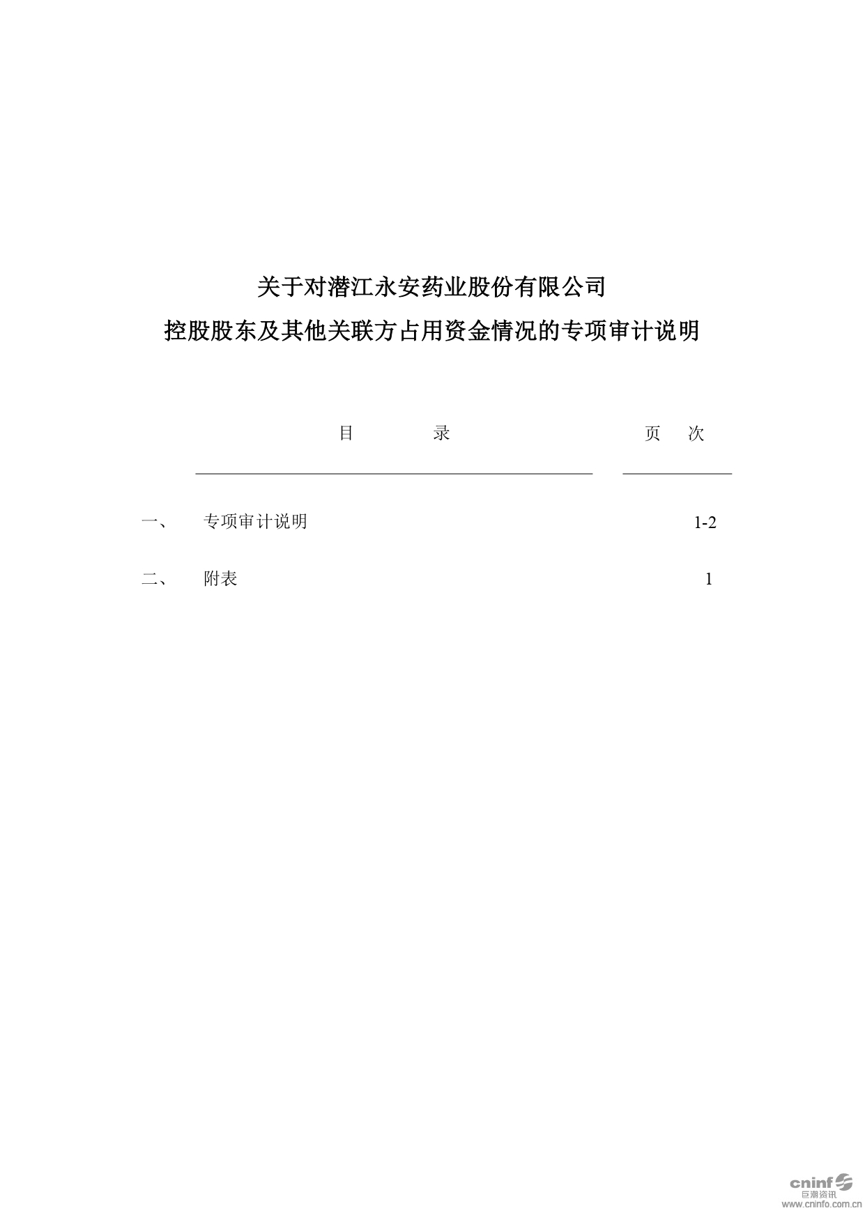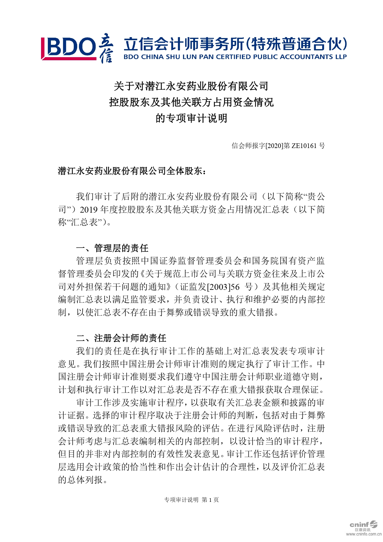 關(guān)于對(duì)公司控股股東及其他關(guān)聯(lián)方占用資金情況的專項(xiàng)審計(jì)說(shuō)明