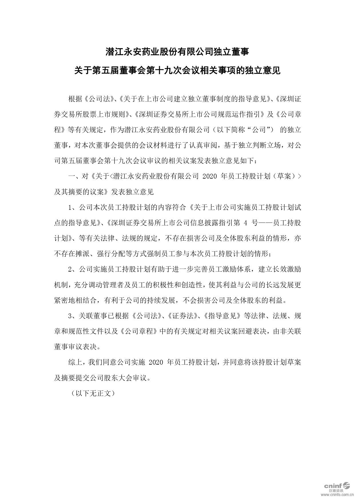 獨(dú)立董事關(guān)于第五屆董事會第十九次會議相關(guān)事項(xiàng)的獨(dú)立意見