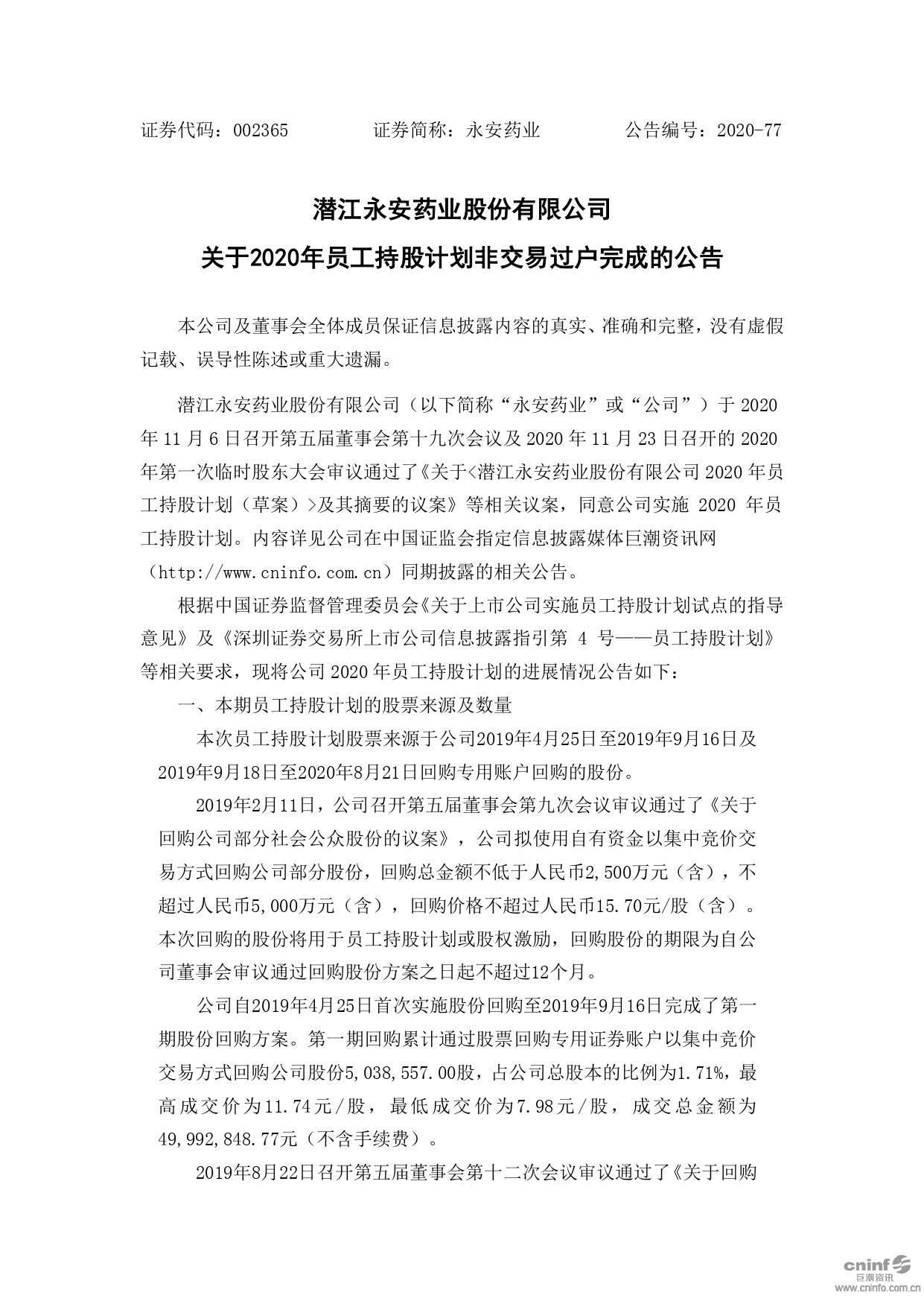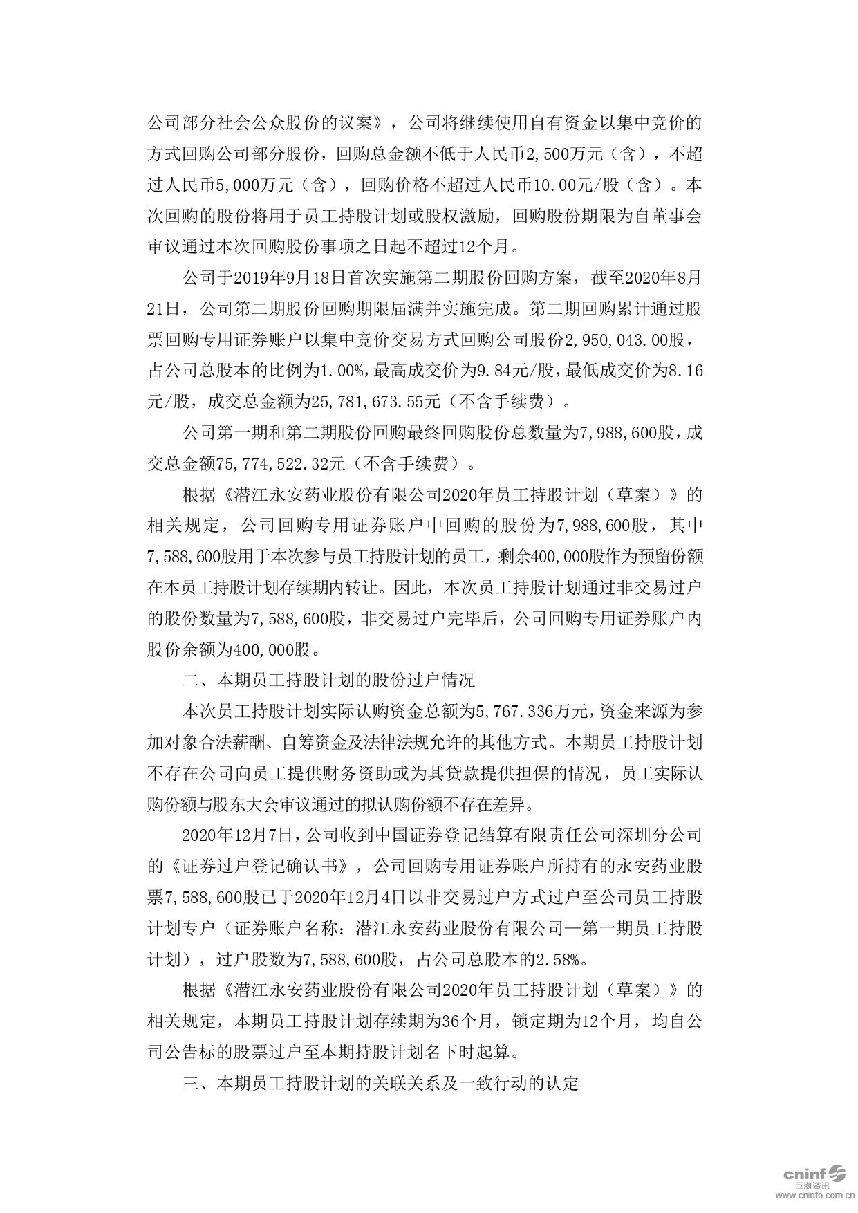 關(guān)于2020年員工持股計劃非交易過戶完成的公告