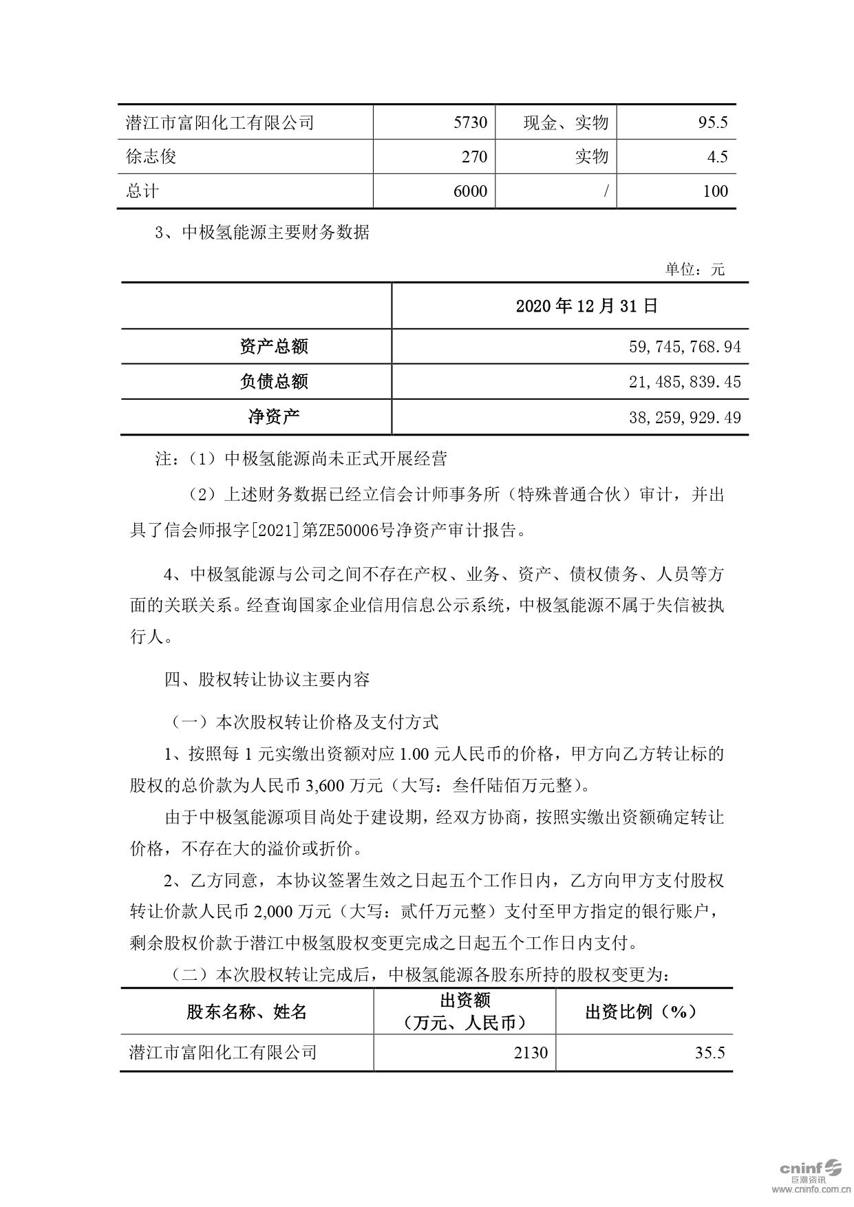 關(guān)于收購(gòu)潛江中極氫能源發(fā)展有限公司60%股權(quán)進(jìn)展公告